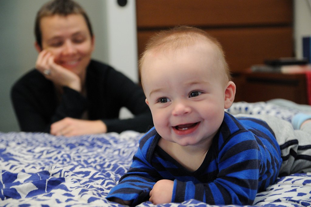 Rolling around on a big bed