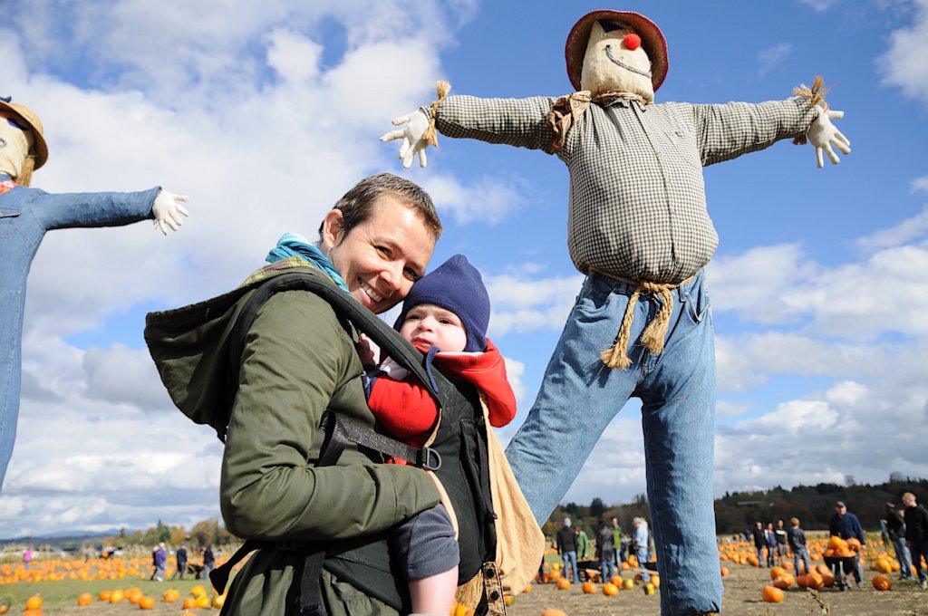 Under the giant scarecrows