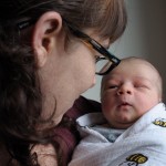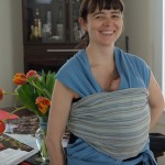 Stronner still prefers to spend his days attached to a warm body, but now that I’ve gone back to work and we had a week break between grandparents, we’ve had to get a little more sophisticated with how we carry him. Thus we have started using the Moby Wrap, as Fiona models in a couple of these photos. It is a big long piece of fabric we can use to cradle him to our bodies so we have both hands free for cooking, cleaning or coding, as the case may be.